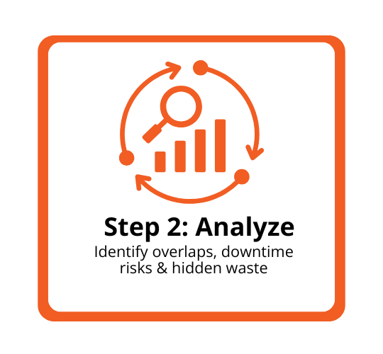 Example report showing current spend, overlaps, downtime cost, and estimated savings.
